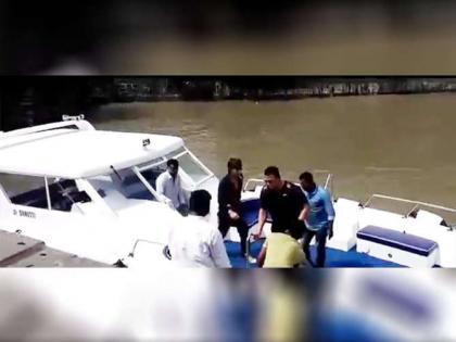 #WATCH: Jayant Patil, Maharashtra MLC from Alibaug, heckled Shah Rukh Khan for not coming out of his yacht at Alibaug Jetty (Mobile video) pic.twitter.com/lq5owiKZnw— ANI (@ANI) November 11, 2017