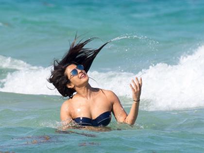 फोटोमध्ये प्रियंका काळ्या रंगाच्या बिकिनीमध्ये दिसत आहे. प्रियंकाचा हा बिकिनी लुक खूपच हॉट दिसत असल्याने हे फोटो सध्या जबरदस्त शेअर केले जात आहे. प्रियंकाचा हा कातिलाना अंदाज बघून असे वाटतेय की, जणू काही मिआमीच्या समुद्रात जलपरी आली असावी. कारण प्रियंकाचे हे फोटोज् तपमान वाढविणारे असून, फॅन्सकडून त्याला प्रचंड लाइक्स आणि कमेण्ट्स मिळत आहेत.