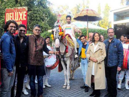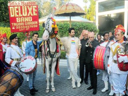 सिनेमाचं प्रमोशन करण्याचे निरनिराळे फंडे चित्रपटसृष्टीत पाहायला मिळतात. छोट्या पडद्यावरच्या शोमध्ये येऊन सिनेमाचं प्रमोशन करण्याचा फंडा हिट झाला असताना आयुष्यमान खुराणाने मात्र वेगळी वाट धरलीय. त्याने थेट दिल्लीच्या रस्त्यांवर चक्क वरातच काढत त्याने आपला आगामी 'शुभ मंगल ज्यादा सावधान' सिनेमाचे प्रमोशन केलं. यावेळी आयुष्यमान घोड्यावर स्वार झालेला पाहायला मिळतोय तर संपूर्ण स्टारकास्ट वरातीत चालच असल्याचे पाहायला मिळतंय. सिनेमात आयुष्मान खुराणा आणि जीतेंद्र ने गे कपलची भूमिका साकारली आहे.