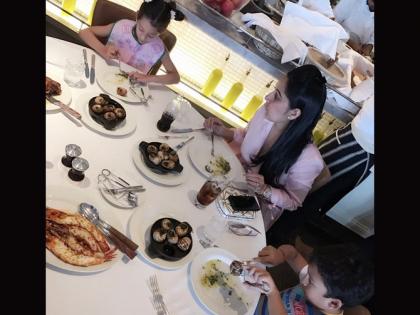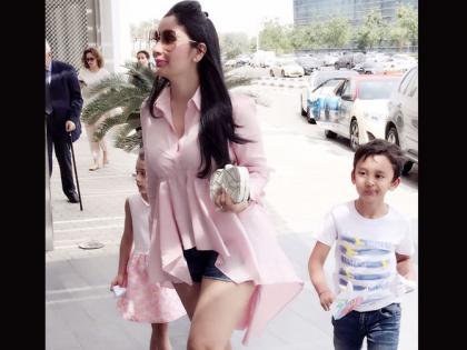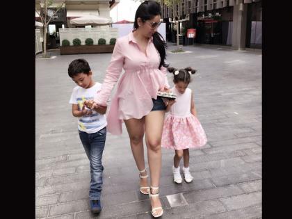 मुलगा शाहरान आणि मुलगी इकरासोबत तिचे काही फोटोज् समोर आले असून, त्यात मान्यताचा लूक खूपच स्टनिंग दिसत आहे. डेनिम हॉट पॅण्ट आणि पिंक टॉप घातलेली मान्यता खूपच सुुंदर दिसत आहे. ती मुलांसमवेत लंच करण्यासाठी एका रेस्टॉरंटमध्ये जात असताना दिसत आहे.
