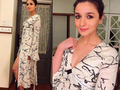 चुलबुली आलिया भट्ट करणच्या पार्टीत तिचा आवडता डिझाईनर प्रबल गुरुंग याने डिझाईन केलेल्या ड्रेसमध्ये पोहोचली होती. प्रिंटेड सिल्क जॅकवार्ड व्ही नेक ड्रेसमध्ये ती अतिशय सुंदर दिसत होती. लाईट मेकअप, केसांचा बन आणि लाईट पिंक लिपस्टिक अशा अवतारात आलियाकडे बघतच राहावे, असे तिने स्वत: कॅरी केले होते.