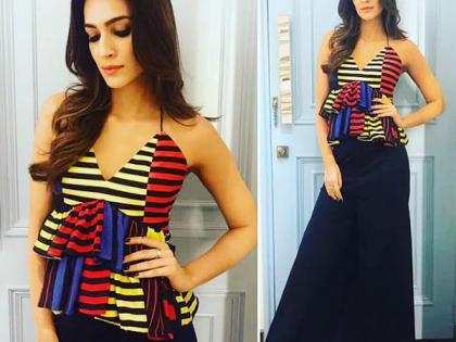 क्रिती सॅनन यावेळी मल्टी कलर्ड स्ट्रिप शॉट टॉप आणि नेव्ही कलरच्या स्कर्ट पॅन्टमध्ये दिसली. राहुल मिश्राने डिझाईन केलेल्या या ड्रेसमध्ये क्रितीचे सौंदर्य आणखीच खुलून आले होते.