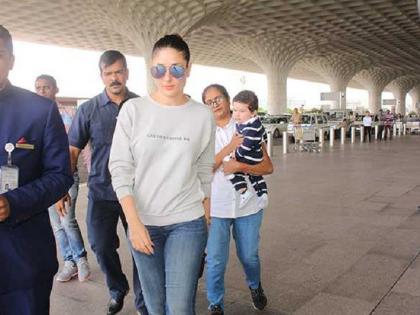 क िना कपूर खान आणि तैमूर अली खान हे दोघेही एकत्र बाहेर पडतात, त्यावेळी सगळ्यांच्या नजरा या मायलेकाच्या या क्यूट जोडीवरून हटता हटत नाहीत. गुरुवारी करिना कपूर मुंबई एअरपोर्टवर दिसली. पण सगळ्यांच्या नजरा करिनाऐवजी तिच्या कडेवर असलेल्या तान्हुल्या नवाबावर खिळल्या होत्या.