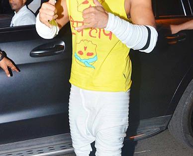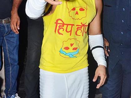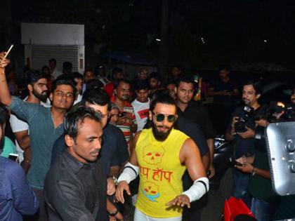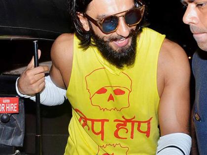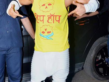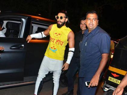 अ िनेता रणवीर सिंग नेहमीच त्याच्या विचित्र कपड्यांच्या स्टाइलमुळे चर्चेत असतो. एकदा तर तो चक्क ‘कंडोम ड्रेस’मध्ये बघावयास मिळाला होता. ज्याने कोणी त्याचा हा लुक बघितला तो दंग राहिला होता. आता पुन्हा एकदा रणवीर अशाच काहीशा विचित्र कपड्यांमध्ये बघावयास मिळाला आहे. व्हाइट ट्रॅकपॅण्ट आणि पिंक कलरचे शूज घातलेला रणवीर या ड्रेसमध्ये खूपच विचित्र दिसत होता. या ड्रेसवर त्याने येलो वेस्ट परिधान केली होती. ज्यावर लाल रंगाने ‘हिप हॉप’ असे लिहिले होते.