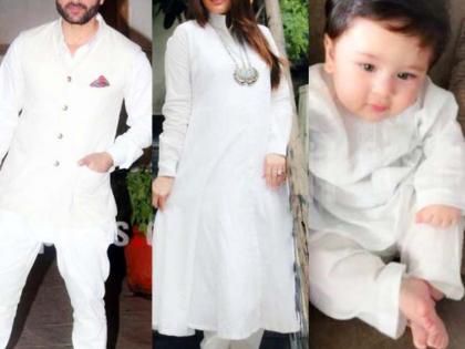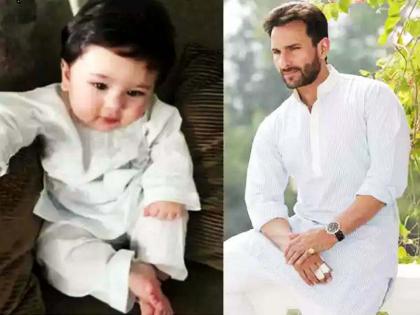 या फोटोमध्ये तैमूर पांढरा कुर्ता आणि पायजामा घालून बसलेला दिसत आहे. तैमूरचा हा नवाबी अंदाजातील फोटो सध्या प्रचंड व्हायरल होत आहे. तैमूरचा हा फोटो व्हायरल होतात सैफ आणि करिनाच्या चाहत्यांनी सैफ आणि करिनाचा नवाबी अंदाजातील फोटो तैमूरच्या फोटोबरोबर एडिट करून सोशल मीडियावर अपलोड केला आहे. या फोटोमध्ये तिघेही पांढºया रंगाच्या ड्रेसमध्ये बघावयास मिळत असून, त्यातील तैमूरचा अंदाज बघण्यासारखा आहे.