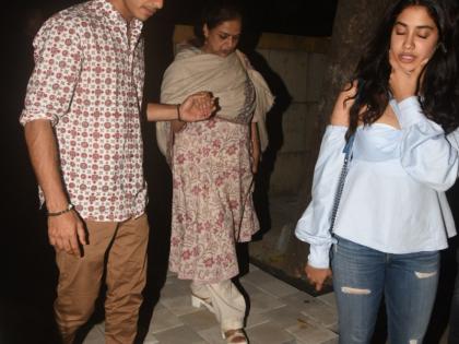 ईशान खट्टर हा त्याची मम्मी नीलिमा अजीम आणि जान्हवी कपूरसोबत गेल्या शुक्रवारी रात्री अभिनेता शाहिद कपूर याच्या घराबाहेर स्पॉट ...