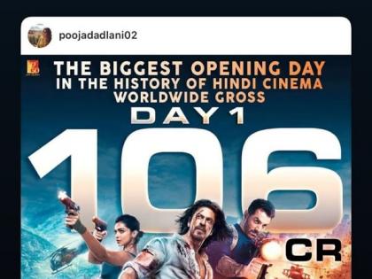 सुहाना खानने इन्स्टा स्टोरीवर पूजा ददलानीची इन्स्टाग्राम पोस्ट पुन्हा शेअर केली आहे, ज्यामध्ये 'पठाण'च्या कलेक्शनची माहिती आहे. चित्रपटाच्या पोस्टरसोबत लिहिले आहे, 'हिंदी चित्रपटांच्या इतिहासातील सर्वात मोठी ओपनिंग. पहिल्या दिवशी पठाण चित्रपटाचे वर्ल्डवाइड ग्रॉस कलेक्शन 106 कोटी रुपये. ही पोस्ट शेअर करत सुहानाने कॅप्शनमध्ये अश्रूवाला इमोजी शेअर केला आहे. तिच्या या इन्स्टा पोस्टवरुन लक्षात येतंय की वडील शाहरुख खानच्या चित्रपटाला मिळालं यश पाहून सुहाना भावूक झाली आहे.