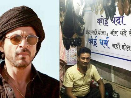 मुंबईच्या उपनगरात लहानसे चप्पल दुरुस्तीचे दुकान चालविणाºया श्याम बहादूर याने ‘रईस’ या चित्रपटातील ‘कोई धंधा छोटा नहीं होता और धंधे से बड़ा कोई धर्म नहीं होता...’ हा डॉयलॉग आपल्या दुकानावर लावला होता. यामुळे श्याम बहादूर चांगलाच चर्चेत आला होता. त्याने हा डॉयलॉग स्वतच्या व्यवसायाशी जोडला होता. विचारणाºयांना हा डॉयलॉग शाहरुख खानच्या आगामी चित्रपटातील असल्याचे तो अभिमानाने सांगत होता. मीडियाच्या माध्यमातून जेव्हा शाहरुख खानपर्यंत ही बातमी पोहोचल्यावर त्याने श्याम बहादूरला भेटण्याची इच्छा व्यक्त केली. श्यामला स्वप्नातही आपण कधी शाहरुखला भेटू असे वाटले नव्हते. मात्र, त्याचे स्वप्न एका डॉयलॉगमुळे प्रत्यात उतरले. Read More : शाहरूख खानने बदलले मुंबईच्या चर्मकाराचे आयुष्य!