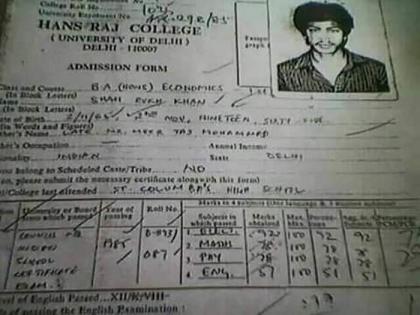 ल ्ष्य स्पष्ट आहे, त्यासाठी जीवतोड मेहनत घेण्याची तयारी आहे तर यश तुमचेच. याचे जिवंत उदाहरण म्हणजे अभिनेता शाहरूख खान. होय, आयुष्यात यशस्वी होण्यासाठी पुस्तकाचा किडा होणे किंवा पैकीच्या पैकी गुण मिळवणे आवश्यक नाही. यशासाठी केवळ गरजेचे आहे ते ध्येय आणि या ध्येयपूर्तीसाठी झपाटलेले मन. या दोन गोष्टी तुमच्याजवळ आहेत तर तुम्हाला यशस्वी होण्यापासून कुणीही रोखू शकत नाही. आम्ही हे यासाठी बोलतोय, कारण आमच्याकडे शाहरूखच्या एका अॅडमिशन फॉर्मचा फोटो आहे. काल पासून सोशल मीडियावर दिल्लीच्या हंसराज कॉलेजच्या एका अॅडमिशन फॉर्मचा फोटो व्हायरल झाला आहे.