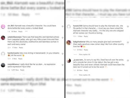 'हिने साकारलेली आलमची भूमिका मला जराही आवडली नाही. जराही तिच्या चेहऱ्यावर एक्स्प्रेशन्स नव्हते. सगळीकडे सेमच एक्स्प्रेशन्स..का?', असं एका नेटकऱ्याने म्हटलं आहे. तर, 'फक्त मीच असा आहे का ज्याने तिचे सीन स्किप केले आहेत. कारण, तिचे सीन खूपच बोरिंग होते', 'तिच्याऐवजी दुसरी एखादी अभिनेत्री नक्कीच हा रोल छान करु शकली असती', 'आलमजेब खूप सुंदर कॅरेक्टर आहे. मात्र, संजय लीला भन्साळीने लाकडी ठोकळ्याचे एक्स्प्रेशन्स असलेल्या भाचीला यात कास्ट केलं', असं म्हणत नेटकऱ्यांनी तिला कमालीचं ट्रोल केलं आहे.