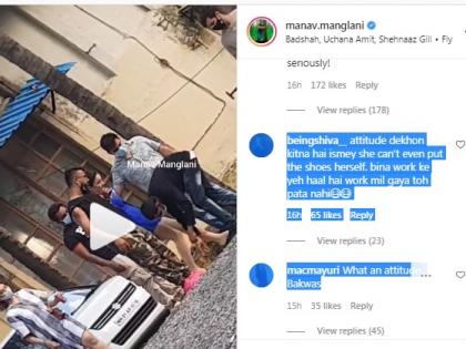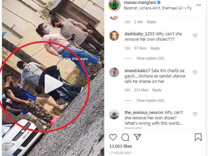 का? तुला स्वत:ची सॅण्डल स्वत: काढताना लाज वाटते का? असा सवाल एका सोशल मीडिया युजरने तिला केला. इतकी चरबी आलीये का? अशा शब्दांत एका युजरने आपला संताप व्यक्त केला. तुझ्याकडून ही अपेक्षा नव्हती शहनाज, तुला लाज वाटायला हवी, असे एका युजरने लिहिले.