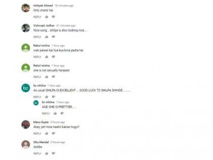 एका यूजरने व्हिडीओ शेअर करताना शिल्पाला म्हटले की, ‘ओन्ली चरबी है’ तर काही शिल्पाच्या डान्सचे कौतुकही करीत आहेत. विश्वजित नावाच्या एका यूजरने कॉमेण्ट करताना लिहिले की, ‘नाइस सॉँग अॅण्ड शिल्पा इज लूकिंग नाइस.’ दरम्यान, शिल्पाने या गाण्यात गोल्डन शिमरी ड्रेस परिधान केलेला आहे. गाण्यात शिल्पाबरोबर बॉलिवूडमधील दिग्गज अभिनेते ऋषी कपूरही ठुमके लावताना दिसत आहेत. ‘भाबी जी घर पर है’ या मालिकेत अतिशय पारंपारिक अवतारात झळकलेली शिल्पा अचानकच अशा अंदाजात बघावयास मिळाल्याने लोकांना तिला पसंत करणे थोडेसे अवघड होत असल्याचेच दिसून येत आहे.
