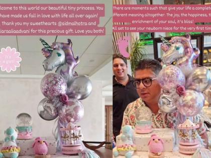कियारा अडवाणीने १५ जुलै रोजी मुलीला जन्म दिला. दुसऱ्या दिवशी सकाळी सिद्धार्थ मल्होत्राने सोशल मीडियावर पोस्ट करत गुडन्यूज दिली. दोघांच्या चाहत्यांनी आनंद व्यक्त केला. इतर सेलिब्रिटींप्रमाणेच सिद्धार्थनेही पापाराझींना फोटो न घेण्याची विनंती केली. त्यामुळे आता छोट्या कियाराचा चेहरा इतक्यात तरी चाहत्यांना बघता येणार नाही. कियाराला दोन दिवसांपूर्वी रुग्णालयातून डिस्चार्ज मिळाला. घरातील सर्व सदस्यांनी चिमुकलीचं थाटामाटात स्वागत केलं. सिड-कियाराच्या फॅन पेजेसवर या सेलिब्रेशनची झलक पाहायला मिळाली. युनिकॉर्न बलून, गुलाबी हिंडोला आणि इतर आकर्षक खेळण्यांसह घर सजवलेलं दिसत आहे. 'आमच्या चिमुकल्या राजकुमारीचं या जगात स्वागत आहे. तुझ्या येण्याने आम्ही पुन्हा आयुष्यावर प्रेम करत आहोत. या अनमोल भेटीसाठी सिद्धार्थ-कियाराचे आभार. तुम्हाला खूप प्रेम."
