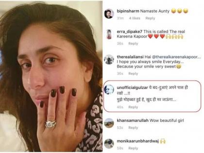 होय, ‘ये बद-दुआएं अपने पास ही रखो... मुझे मोहब्बत हुई है, मैं खुद ही मर जाऊंगा,’ असे या कमेंटमध्ये लिहिलेले आहे. काहींना करिनाचा हा ‘नो मेकअप लूक’ आवडला आहे तर काहींनी हा लूक भयंकर असल्याचे म्हटले आहे. तुम्हाला करिनाचा हा लूक कसा वाटला ते सांगायला विसरू नका.