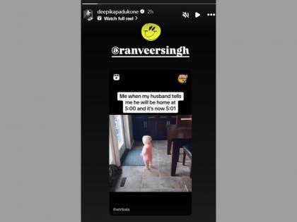 आता अलीकडेच 'सिंघम अगेन' अभिनेत्रीने तिच्या इन्स्टा पोस्टवर एक स्टोरी शेअर केली आहे, ज्यात एखाद्या मुलीचा नवरा दिलेल्या वेळेत घरी आला नाही तर ती खिडकीजवळ उभी राहून त्याची वाट पाहते असा फोटो आहे. या मीममध्ये कॅप्शन लिहिले की, "माझे पती मला सांगतात की तो ५ वाजता घरी येईल, म्हणून मी ५:१ मिनिटाला...". या पोस्टमध्ये दीपिका पादुकोणने रणवीर सिंगला टॅग करताना एक मजेदार इमोजी शेअर केला आहे.