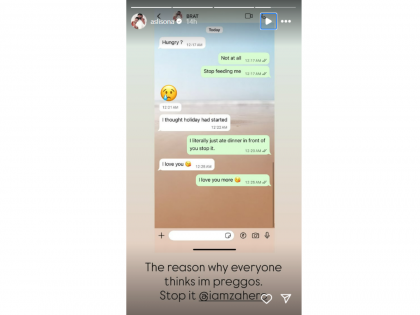 सोनाक्षीनं इंस्टाग्रामवर तिच्या स्टोरीमध्ये झहीरसोबतच्या खासगी चॅटचा स्क्रीनशॉट ( Sonakshi Sinha Shares Whatsapp Chats With Husband Zaheer Iqbal) शेअर केलाय. त्या चॅटमध्ये दिसतंय की झहीर तिला विचारतो, "भूक लागलीये का?" त्यावर सोनाक्षी उत्तर देते, "भूक नाही आहे. जबरदस्तीने खाऊ घालणं बंद कर". पुढे झहीर म्हणतो, "मला वाटलं सुट्ट्या सुरू झाल्या आहेत".त्यावर सोनाक्षी म्हणते,"मी आताच तुझ्यासमोर जेवण केलं आहे. आता नको आहे मला काही". या संवादाच्या अखेरीस झहीर तिला "I love you" म्हणतो. त्यावर सोनाक्षी "I love you more" असं उत्तर देते. सोनाक्षीनं या चॅटचा स्क्रीनशॉट शेअर करत लिहिलं, "यामुळेच लोकांना वाटतं की मी प्रेग्नंट आहे, असं वागणं बंद कर झहीर". तिच्या या पोस्टनंतर चाहत्यांचा गैरसमज दूर झाला आहे. प्रेग्नंसीच्या अफवांना खोडून काढणं हा सोनाक्षीचा चॅट शेअर करण्यामागचा हेतू होता.