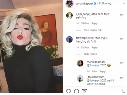 यावर यूजर्सनी खूप सारे कमेंट्स केले आहे. कुणी लिहिले, शानदार फेस पेंटिंग, तर कुणी लिहिले, तुझा विग हलतो आहे. याला फिक्सकर नाहीतर तो पडले बहिणी. कुणी लिहिले, तर आहे तुझ्या सौंदर्याचे रहस्य ? सोनम कपूर तिच्या वक्तव्यांमुळे किंवा लूक्सला घेऊन नेहमी ट्रोल होत असते. सोनमने 2018 मध्ये आनंद आहुजा या बिझनेसमनसह लग्नबंधनात अडकली होती. लग्नानंतर ती फारशी सिनेमातही झळकली नाही.'निरजा' आणि 'झोया फॅक्टर' या दोन सिनेमानंतर ती बालिवूडपासून लांब गेली.