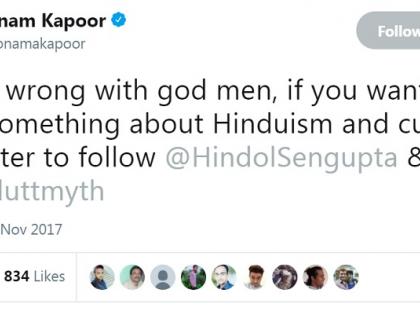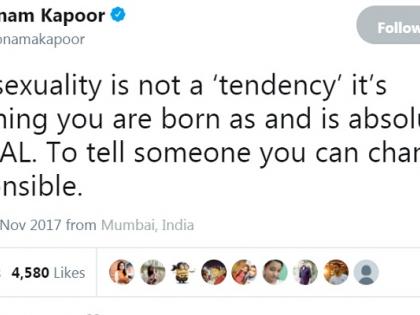 ‘होमोसेक्युअॅलिटी कुठलीही प्रवृत्ती नाही. तर ती जन्मजात बाब आहे आणि अगदी सामान्य आहे,’ असे तिने लिहिले. ‘धर्मगुरुंना शेवटी अडचण काय आहे? तुम्हाला हिंदुत्व वा संस्कृतीबद्दल काही शिकायचे असेल तर यांच्याऐवजी अन्य लोकांना फॉलो करणे उत्तम आहे,’ असेही सोनमने लिहिले,