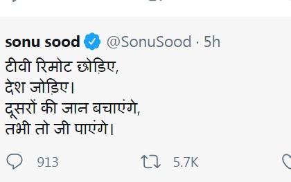 सोनूने ट्विट करत देशातील जनतेला कळकळीचे आवाहन केले आहे.