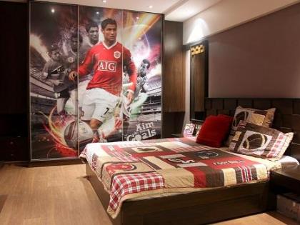 घराचं इंटिरीअर सजवण्यासाठी त्याने बरीच मेहनत घेतली आहे.घराच्या भिंतीवरही काही सुंदर विचार लिहिलेले पाहायला मिळतात. तर एका भिंतीवर ओम रेखाटलेला आहे. डायनिंगपासून गार्डन एरियापर्यंत घराचा कोपरा अन् कोपरा सजवण्यासाठी बरीच मेहनत घेतली असून कुणाचंही लक्ष आकर्षित करेल.
