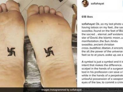 सोफिया हयात पुन्हा वादात; तळव्यांवर गोंदवला स्वस्तिकचा टॅटू!