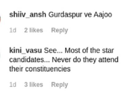 अन्य एका युजरने सेलिब्रिटी लोकप्रतिनिधींना यानिमित्ताने लक्ष्य केले. ‘अनेक स्टार लोकप्रतिनिधी मतदारसंघाकडे फिरकतही नाहीत,’ असे या युजरने म्हटले. ‘गुरूदासपूरचा स्टार, सुट्टीच्या मूडमध्ये...आता व्हिडीओ आणि सिनेमे....सगळे काही चांगले असेल, अशी आशा करूयात,’ असे अन्य एकाने लिहिले. पंजाबमधील गुरुदासपूरमधून दिवंगत अभिनेते विनोद खन्ना यांच्या जागी भाजपने अभिनेता सनी देओल यांना लोकसभेसाठी मैदानात उतरवले होते. पुलवामा हल्ल्यानंतर, बालाकोट एअरस्ट्राइक झाल्यानंतर भाजपने राष्ट्रवाद आणि देशभक्तीचे वातावरण पाहात सनी देओल यांना उमेदवारी दिली होती. सनी देओल यांच्या सिनेमांमधून ही प्रखर राष्ट्रवादाची भावना दिसते. त्यामुळे सनी देओल यांची ही प्रतिमा त्यांच्या विजयाचे कारण ठरली.