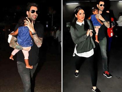 स ी लिओनी नुकतीच मुलगी निशा आणि पती डेनियल वेबरसोबत स्पॉट झाली. यावेळी निशा डॅडी डेनियलच्या कडेवर होती. तिने डेनिम टॉप आणि पिंक कलरचा लेगिंग घातला होता. यावेळी डेनियल माध्यमांच्या कॅमेºयापासून आपल्या चिमुकलीचा चेहरा लपविण्याचा प्रयत्न करीत होता. तर सनी त्याला लवकर निघण्याची घाई करीत होती. सनी नुकतीच मुलगी आणि पतीसोबत दिल्लीहून परतली आहे. त्याठिकाणी ती तिचा अपकमिंग ट्रेक ‘तेरा इंतजार’च्या प्रमोशनसाठी गेली होती. तेथून परताना सनी आपल्या परिवारासोबत बघावयास मिळाली.