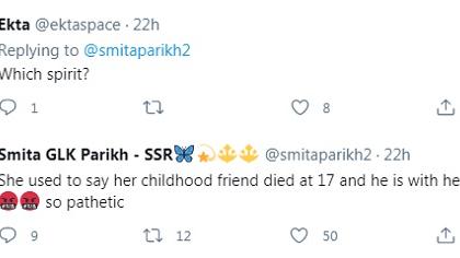 स्मिताच्या या पोस्टनंतर रिया चक्रवर्ती पुन्हा एकदा सुशांतच्या चाहत्यांच्या निशाण्यावर आली आहे. अनेक युजर्सनी स्मिताला तो अतृप्त आत्मा कोण? असा सवाल केला आहे. यावरही स्मिताने उत्तर दिले. तिने लिहिले, ‘ती नेहमी सांगायची, तिच्या लहानपणीचा मित्र 17 वर्षांचा असताना जग सोडून गेला. त्या मित्राचा आत्मा तिच्यासोबत आहे. किती दु:खद गोष्ट आहे.’