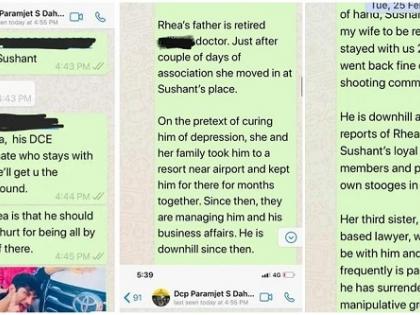 या व्हाट्सअॅप चॅटमध्ये सुशांतचे नाव लपवण्यात आले आहे. मात्र हे सर्व मॅसेज मुंबई आयपीएस ऑफिसर परमजीत सिंग दहिया यांना पाठवण्यात आले होते.