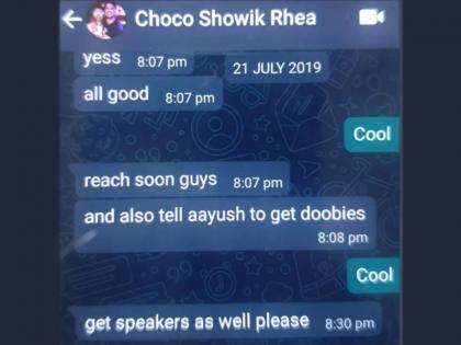 या ग्रुपमध्ये रियाचा भाऊ शोविकचं चॅटींगही आहे. त्याने मेसेज केलाय की, लवकर पोहोचा. आयुषला सांगा की डूबीज घेऊन ये. सोबतच लिहिले आहे की, स्पीकर्सही घेऊन ये.