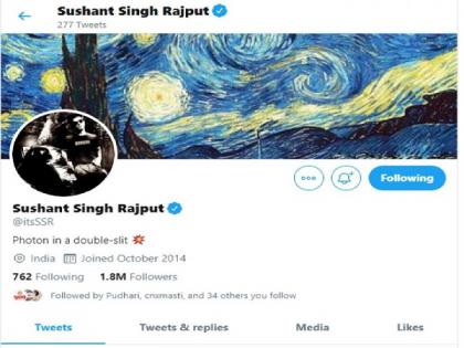 सुशांतच्या ट्विटर हँडलबद्दल सांगायचे तर त्याने एका पेंटिंगचा फोटो कव्हरपेजवर लावला होता. या पेंटिंगमागची कथा खूपच रोमांचक आहे. ही एक जगप्रसिद्ध पेंटिंग आहे. जगातील सर्वाधिक गाजलेल्या आर्ट पीसपैकी एक आहे. कॉफी मगपासून तर घरांच्या भींतींपर्यंत ही पेंटिंग तुम्हाला दिसेल. जगप्रसिद्ध चित्रकार व्हिन्सेंट व्हॅन गोघ (Vincent van Gogh - Starry Night) यांनी ते चितारले होते. या चित्राचे सौंदर्य अनंत आहे. कदाचित शब्दांत सांगता येणार नाही,असे. त्यामुळेच या चित्राचा अर्थ, त्याचा भावर्थ समजणे प्रत्येकाला शक्य नाही. कदाचित सुशांतसारखे दुस-या जगाची स्वप्नं बघणारी माणसंच या चित्राला उत्तमरित्या समजू शकतात.