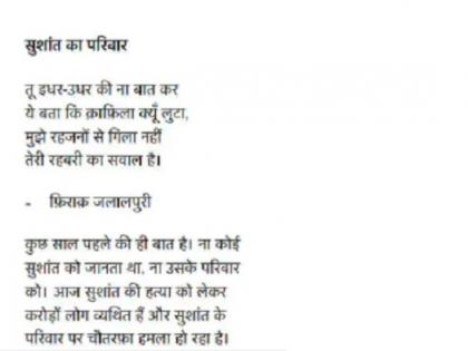 आखिर ‘सुशांत का परिवार’ होने का मतलब क्या है...! सुशांतच्या कुटुंबाने प्रसिद्ध केले 9 पानांचे पत्र