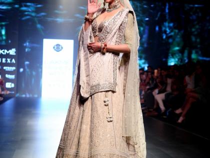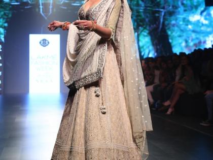 म जी मिस युनिव्हर्स सुष्मिता सेन जेव्हा नववधूच्या वेशात बघावयास मिळाली तेव्हा सगळ्यांच्याच नजरा तिच्यावर खिळल्या. वयाच्या ४२व्या वर्षीय सुष्मिताचा अंदाज खूपच रॉयल दिसला. तिचा जलवा बघण्यासारखा होता. त्यामुळे तिच्यावर नजर हटविणे अनेकांना अवघड झाले होते. सुष्मिताने डिझायनर मीरा आणि मुजफ्फर अली यांनी बनविलेला लहेंगा आणि चोळी परिधान केली होती. ती जेव्हा रॅम्पवर उतरली तेव्हा ‘उमराव जान’मधील ‘इन आंखों की मस्ती’ हे गाणे लावण्यात आले होते. सुष्मितानेही अभिनेत्री रेखा यांच्या अदांची कॉपी करत वॉक केला.