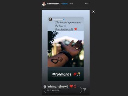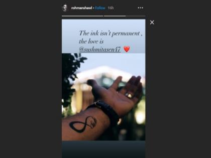 रोहमनने टॅटूचा फोटो शेअर करत लिहिले, 'इंक कायमस्वरूपी नाही पण प्रेम आहे.' रोहमने या पोस्टला सुश्मिता सेनला सुद्धा टॅग केला आहे. अभिनेत्रीनेसुद्धा रोहमनचे इन्स्टास्टोरीवर आपलं रिअॅक्शन दिलं आहे. सुष्मिता सेनने इन्स्टास्टोरीवर शेअर करते लिहिले, #rohmance.