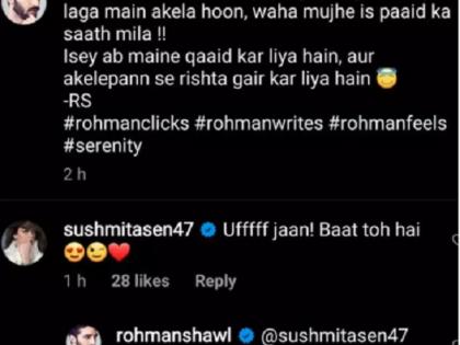 रोहमनने एका झाडाचा फोटो पोस्ट करत, सोबत एक मार्मिक कॅप्शन शेअर केले होते. ‘ उस वक्त, उस जगह, जहां मुझे लगा मैं अकेला हूं, वहां मुझे इस पेड़ का साथ मिला! इसे अब मैंने कैद कर लिया है और अकेले पन से रिश्ता गैर कर लिया है.- आरएस’, अशी पोस्ट रोहमनने केली. त्याची ही पोस्ट वाचून सुश्मिता व रोमहनच्या ब्रेकअपच्या चर्चा सुरु झाल्यात. मात्र सुश्मिताने लगेच रोहमनच्या या पोस्टवर कमेंट केली. ‘उफ्फ जान... बात तो है,’ असे कमेंटमध्ये तिने लिहिले. तिची ही कमेंट पाहून रोहमन व तिच्यात सगळे काही आॅलवेल असल्याचे स्पष्ट झाले.