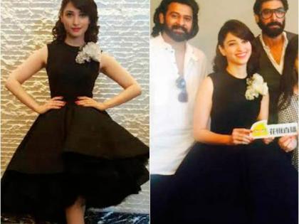 'बॉर्बी' लूकमध्ये दिसली तमन्ना भाटीया, टीमसोबत केले 'बाहुबली'चे प्रमोशन