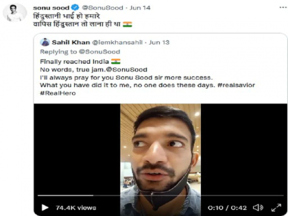 साहिलने सोनू सूदला टॅग करत लिहिले, “अखेर मी भारतात पोहोचलो, माझ्याकडे शब्दच नाहीत. तुमच्या यशासाठी मी नेहमी प्रार्थना करेन. तुम्ही माझ्यासाठी जे केले, ते कोणी करत नाही. तू खरा हिरो आहेस." साहिलच्या या व्हिडिओला उत्तर देताना सोनूने लिहिले की, "हिंदुस्थानी भाई आहेस... भारतात परत आणावे लागले." सोनूच्या या कामाचे सोशल मीडियावर खूप कौतुक होत आहे. अभिनेत्याची ही उदात्त कृती प्रत्येक वेळी लोकांची मने जिंकते.