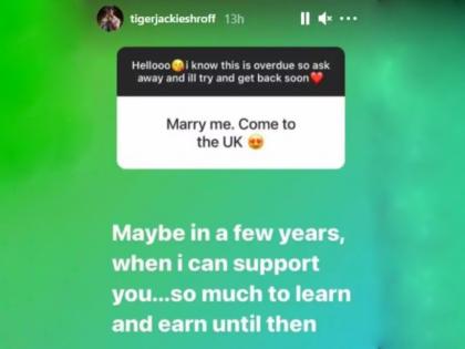 तेच एका फॅनने त्याला विचारले की, तू माझ्याशी लग्न कर, यूकेला ये. टायगरने या प्रश्नाचं फारच जबरदस्त उत्तर दिलं. त्याने लिहिलं की, कदाचित काही वर्षांनंतर, जेव्हा मी तुझा सपोर्ट करू शकेन, तोपर्यंत खूप शिकायचंय आणि कमवायचंय.