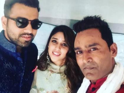 * मित्र-आप्तेष्टांसह : युवराज सिंगचा मॅनेजर अनीश गौतम सोबत रोहित शर्मा आणि रितीका सजदेह.