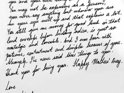 मी रोज तुला फोन करू शकत नाही, पण तुझी आठवण होत नाही, असा एक दिवसही जात नाही. एक व्यक्ति म्हणून मी तुझे वर्णन करू शकत नाही. तू कधीही काहीच बोलत नाही, पण जेव्हा केव्हा तू मला बघतेस, तेव्हा तुझे डोळे बोलायला लागतात. तुझे असे व्यक्त होणे, माझ्यासाठी खास असते. आजही तू शगुनाचे पैसे लिफाफ्यात घालून देतेस. ते खरोखरच गोड आहे. माझ्यातील संयम, समाधानी वृत्ती आणि गालावरची खळी सर्वच तुझीच देण आहे. मी या गोष्टी कधीच तुला बोलून दाखवल्या नाहीत. तू जशी आहेस, तशीच राहिलीस, यासाठी धन्यवाद. मदर्स डेच्या शुभेच्छा आई...