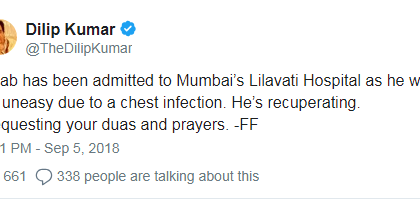 ज्येष्ठ अभिनेते दिलीप कुमार पुन्हा लीलावती रुग्णालयात दाखल