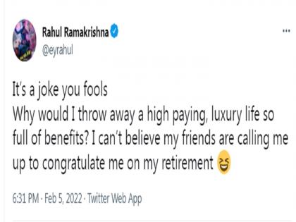 चाहते संभ्रमात असताना अचानक काही तासानंतर राहुलने पुन्हा एक पोस्ट केली. ‘हा एक विनोद होता मूर्खांनो. मी इतका पैसा असलेले, विलासी आयुष्य का फेकून देऊ? माझे मित्र मला कॉल करून निवृत्तीबद्दल माझं अभिनंदन करत आहेत, यावर माझा विश्वास बसत नाहीये,’असं त्याने या ट्विटमध्ये म्हटलं.