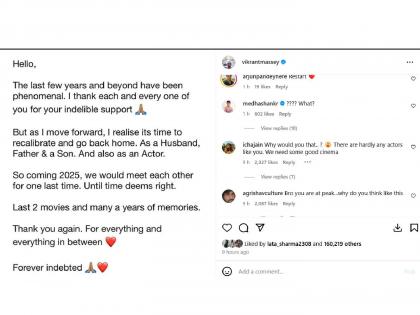 दुसरीकडे विक्रांतचा नुकताच 'साबरमती: द रिपोर्ट' रिलीज झाला. यामध्ये त्याच्यासोबत राशी खन्ना झळकली. तिनेही कमेंट करत 'What? NO!' असे लिहिले. तर अभिनेत्री दिया मिर्झानेही कमेट करत म्हटले, 'ब्रेक घेणं हे बेस्ट असतं. तू ही दुसरी बाजूही खूप छान सांभाळशील'.