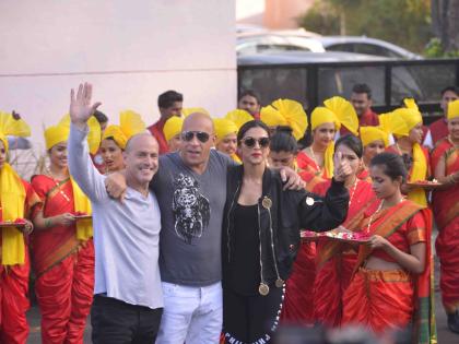 हॉलिवूडचा अॅक्शन सुपरस्टार विन डिझेलचे मुंबईत मराठमोळ्या पद्धतीने स्वागत करण्यात आले. यावेळी त्यांच्यासोबत दीपिका पादुकोण ही होती. 'xxx द रिटर्न ऑफ झेंडर केज’ या हॉलिवूडपटाच्या प्रमोशनसाठी विन भारतात आला आहे.