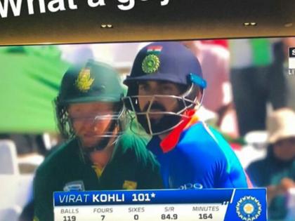 दक्षिण आफ्रिकेविरुद्धच्या तिसºया एकदिवसीय सामन्यात विराट कोहलीने जबरदस्त फलंदाजी करताना ३४ वे शतक झळकाविले. याचे पत्नी अनुष्का शर्माने चांगलेच सेलिब्रेशन केले.