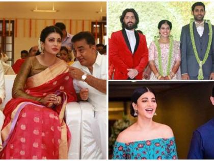 क ल हासनची मुलगी श्रुती हासन हिचा बॉयफ्रेन्ड मायकेल कोर्सेल सध्या भारतात आहे, हे तुम्हाला ठाऊक आहेच. आम्ही तुम्हाला याबद्दलची बातमीही दिली होती. काल-परवाच श्रुती व तिचा बॉयफ्रेन्ड मायकेल दोघेही श्रुतीची आई सारिकासोबत दिसले होते. या तिघांचे फोटोही व्हायरल झाले होते. पण यानंतरचा श्रुती व मायकेलचा ताजा फोटो तुम्ही बघाल तर अवाक् व्हाल. होय, श्रुती व मायकेलचा हा फोटो आहे एका लग्न सोहळ्यातला. अलीकडे तामिळ अभिनेता आधव कन्नदासन आणि विनोधिनी सुरेश लग्नबंधनात अडकले. या सोहळ्याला श्रुती व मायकेल यांनी हजेरी लावली. विशेष म्हणजे, श्रुतीचे पापा कमल हासन हेही यावेळी दिसले. या तिघांचा एक फोटो सध्या व्हायरल होतो आहे. या फोटोत श्रुती लाल रंगाच्या साडीत आहे तर मायकेल पारंपरिक दाक्षिणात्य पोशाखात आहे. दोघांच्याही बाजूला कमल हासन बसलेला आहे. एकंदर काय तर, मायकेल व श्रुतीचे रिलेशनशिप सारिका व कमल दोघांनाही मान्य आहे, असेच या फोटोवरून दिसतेय. त्यामुळेच येत्या काळात श्रुती मायकेलसोबत लग्नबंधनात अडकली तर नवल वाटायला नकोय.