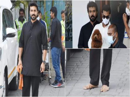 Ram Charan : काल रविवारी अभिनेता रामचरण मुंबईत होता. प्रायव्हेट एअरपोर्टवर तो दिसला आणि त्याला पाहून सगळेच हैराण झालेत. कारण काय तर रामचरण अनवाणी पायानं होता.