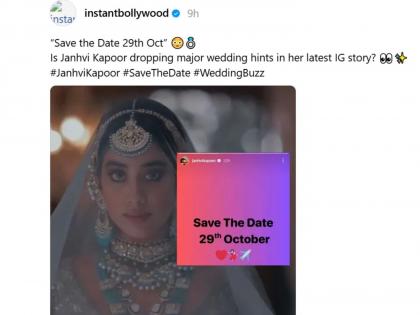 जान्हवीच्या या एका ओळीच्या पोस्टनंतर चाहत्यांमध्ये आणि मीडियामध्ये विविध तर्कवितर्क लावले जात आहेत. हृदयाची इमोजी आणि "डेट सेव्ह करा" या वाक्यामुळे अनेक चाहत्यांनी हा थेट तिच्या लग्नाचा संकेत असल्याचं मानलं आहे. २९ ऑक्टोबरला जान्हवी आणि तिचा बॉयफ्रेंड शिखर पहाडिया विवाहबंधनात अडकणार असल्याचा अंदाज सोशल मीडियावर व्यक्त होत आहे. तर काहींनी असा तर्क लावलाय की, जान्हवीच्या 'चालबाज इन लंडन' या चित्रपटाची घोषणा २९ ऑक्टोबरला होऊ शकते. आता या पोस्टमागचा खरा अर्थ काय, याची थोडी वाट पाहावी लागेल.