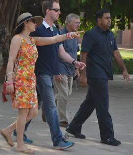 ब लिवूड अभिनेत्री प्रीति झिंटा गुरुवारी तिचा लाडका हबी जेन गुडइनफ याच्यासोबत जगप्रसिद्ध ताजमहाल पाहायला आगºयात पोहोचली. प्रीति व जेन सुमारे पाऊण तास हातात हात घालून ताजमहालचे सौंदर्य न्याहाळताना दिसले. डायना बेंचवर पतीसोबत फोटो काढून घेताना प्रीतिने ताजमहालची तोंडभरून स्तूती केली. प्रीति ताजमहल परिसरात पोहोचत नाही तोच तिचे चाहते प्रीति...प्रीति..म्हणून ओरडू लागले. मीडिया आणि लोकांमध्ये प्रीतिचे फोटो काढण्यासाठी एकच चढाओढ माजली. काही वेळ प्रीतिने हे सगळे एन्जॉय केले. पण यानंतर एका फोटोग्राफरला उद्देशून ती काहीशी पुटपुटली. इतके फोटो घेत आहात. ऊन लागत नाही का? असे तिने विचारले. रॉयल गेटवर ताजची पहली झलक पाहताच प्रीति व जेन आश्चर्यचकीत होऊन तिथेच थबकले. दोघांसोबतही गाईड होता. पण प्रीति स्वत:च जेनला शाहजहां व मुमताज यांच्या अमर प्रेमाची कहानी सांगू लागली. खूप ऊन आहे. पण ताज पाहण्याची मजा काही औरच..असे मीडियाच्या एका प्रश्नाला उत्तर देताना प्रीति म्हणाली. यावर्षी फेब्रुवारी प्रीतिने जेनसोबत विवाह केला.