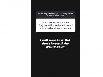 गश्मीर सोशल मीडियावरुन त्याच्या चाहत्यांसोबत अनेकदा संवाद साधत असतो. आताही त्याने इन्स्टाग्रामवर Ask Me सेशन घेतलं होतं. यामध्ये त्याला एका चाहत्याने विचारलं की "तू मुंबईचा फौजदार सिनेमाचा रिमेक बनवशील का? प्राजक्ता माळी आणि तू मुख्य भूमिकेत छान दिसाल". चाहत्याच्या प्रश्नाला उत्तर देताना गश्मीरने 'मुंबईचा फौजदार' सिनेमाचा रिमेक बनवण्याची इच्छा व्यक्त केली.